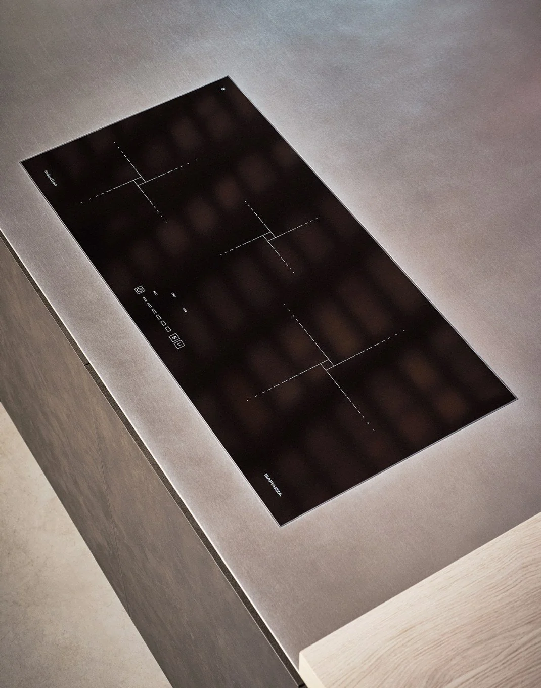The countertop induction hob has three, in-line cooking zones: it is aesthetically refined and very easy to clean.